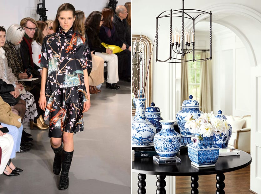 We couldn’t have been more delighted to see chinoiserie patterns showing up on the runways. This is a look we’ve long loved, and it’s a classic motif that translates as beautifully into clothing as it does into your home.
