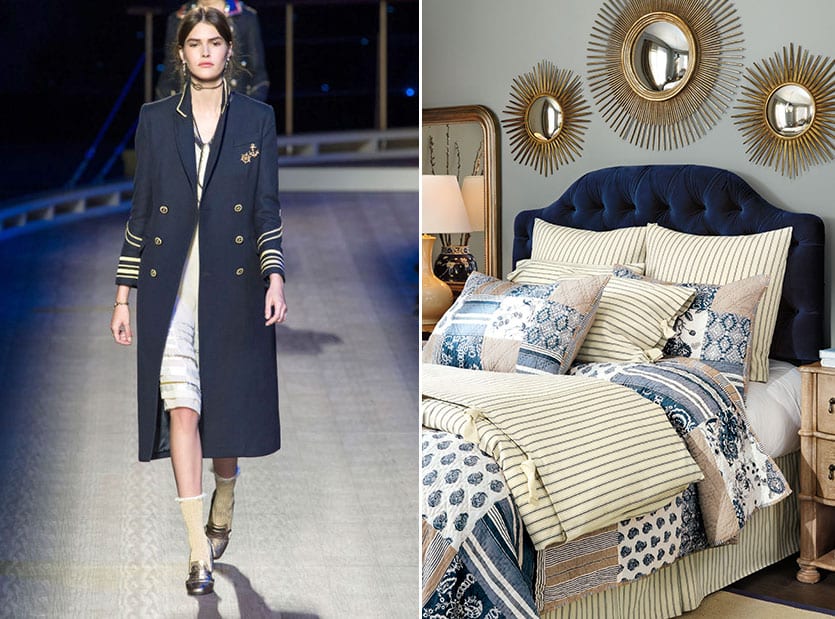 We’re all aboard the navy train (err, boat?), and it appears the fashion world is too! We love the way metallic works with classic navy to give it nautical feel, just like our gold sunburst mirrors look fantastic over a navy headboard.