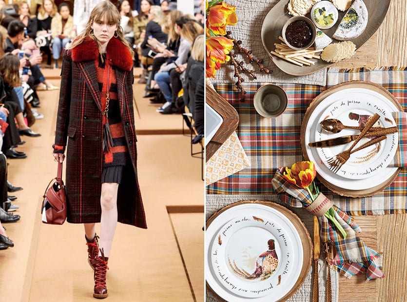 For fall and winter, there’s no more appropriate pattern than a plaid! We translated this perfect pattern into table linens and throw blankets, and on the runway, it was mostly in outerwear.