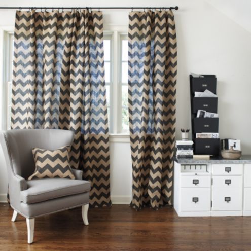 Rated 5 out of 5 by from Striking pattern and color way These drapes are well made and have a good price point. I hung a panel on each side of a three window feature in my husband's Home office. Tied back panels with a burlap tie back with a wood ball attached. They look decorator fabulous. Striking chevron color way pattern.