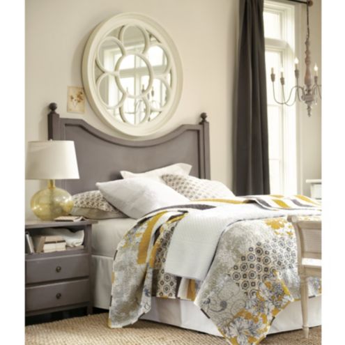 Rated 4 out of 5 by from Beautiful distressed grey color, heavy and good quality. Issues with threshold delivery. Headboard had brown stain residue, poor finishing. Beautiful distressed grey color, heavy and good quality. Issues with threshold delivery (had trouble reaching delivery company, they did not want to deliver unless I was home during business hours, which is not an option for those of us who work business hours, took extra weeks for delivery due to these issues.) Frame has brown residue (distress stain could ruin bedding if I did not clean.) I tried to gently wipe off with a cloth, but took off some paint in the process. :( Style was pretty, but frame should be distressed, cleaned then coated to protect. Disappointed in finish work for the price, but still love the grey color and style of headboard.
