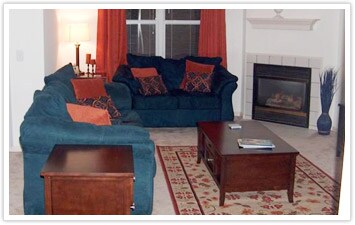 Our Couture Pillows would be a wonderful addition to your sofa and loveseat. You can also add your existing orange pillows for an additional pop of color. The coffee table appears to be a little sparse. Placing our Paperwhites in the larger size and adding some leather bound books (perhaps with orange bindings) will complete the look.