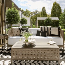 Ballard Designs was honored to provide some of the outdoor furniture for the event. It is always nice to see how someone envisions what they will do with our planters or outdoor furniture. We think we will let the pictures speak for themselves. Maybe the images will inspire you to create that special outdoor space. Just remember it doesn’t have to be elaborate, maybe a container full of purple and white blooms on your deck will be just the touch you need. Nature has a way of making us feel connected and revitalized. Enjoy the tour!
