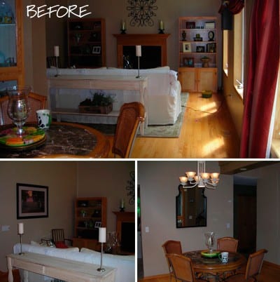 I would like a little help decorating my dining and living area. I have 12ft ceilings and my living is 14×13 and dining is 10×13. I don’t know where to begin!! There are so many beautiful things in your catalog! Do you have any ideas on making these to areas work together? I am thinking of removing the bookcases by the fireplace, do you think it would be better with them gone? Also I was thinking of putting a chandelier in replace of the ceiling fan. Would I want to match both ceiling fixtures? Window treatments, furniture, lighting any ideas? I need a transformation in these two areas!!