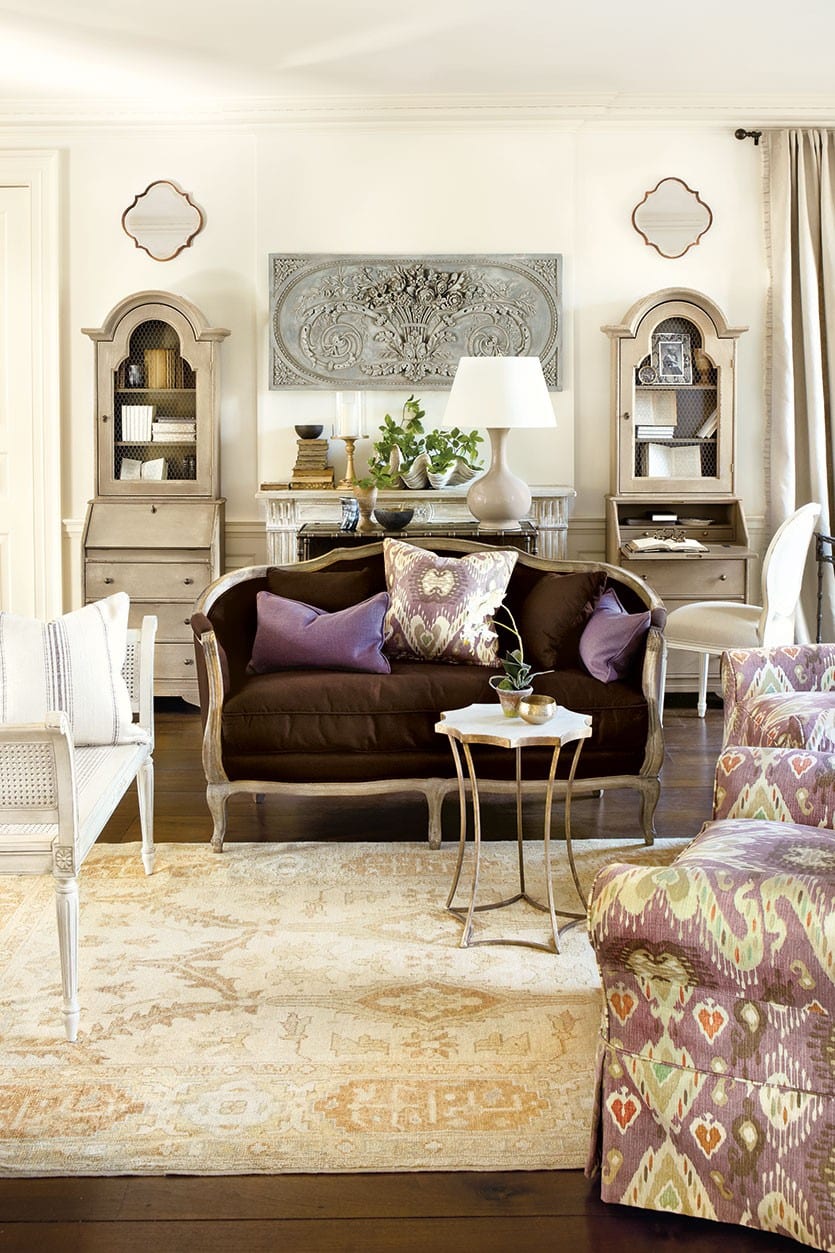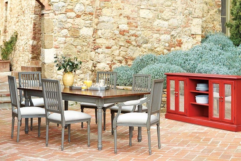 For years, conventional wisdom told you to match the furniture and finishes in your room. Well, not anymore. For a more collected, lived-in look that gives a room soul, go ahead and mix furniture styles and experiment with color. For example, we wouldn’t think twice about placing a bleached salvaged wood coffee table next to a traditional Louis armchair upholstered in an Ikat fabric. Similarly, the distressed pieces in Casa Florentina can easily mix in with your existing furniture, whether you lean more traditional or modern, without competing.