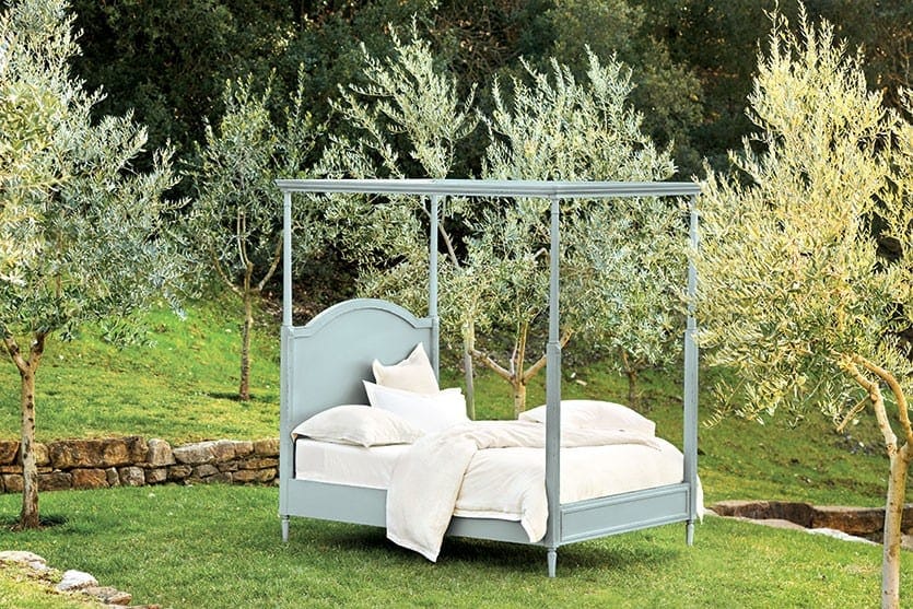 We love the Louis XVI Poster Bed in Distressed Blue Gray. Why not make your bed the focal point? Layer in linens and keep your side tables and cherry dresser and you have created a room with personality and great European style.
