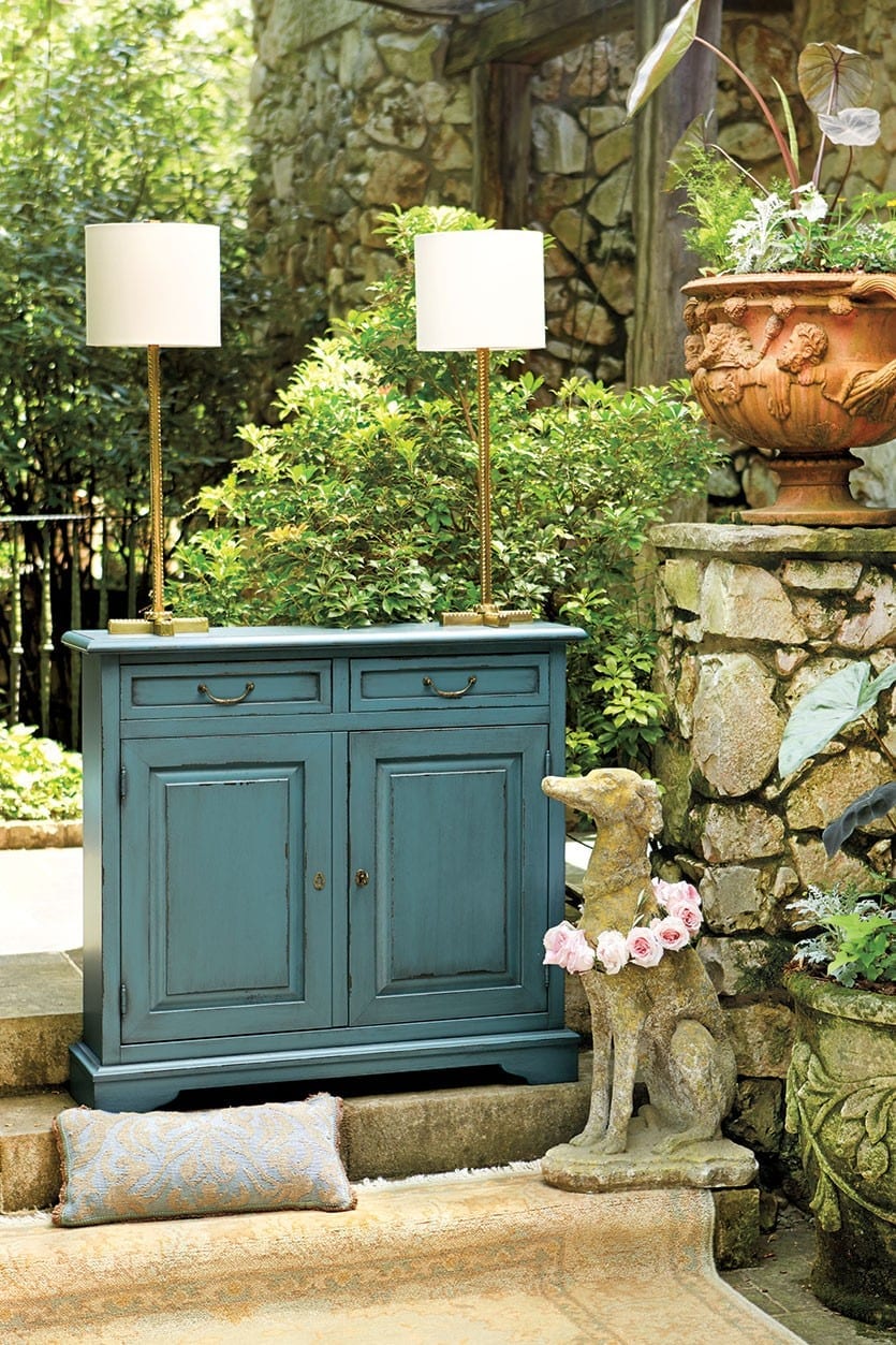 Our favorite finishes in the collection are the more unexpected colors, such as Distressed Blue (shown on our San Marino Secretary Desk with Hutch). We love the idea of pairing a great body with a bold color to make it that knockout piece in any room. However, years of decorating experience has taught us that when it comes to furniture, it’s hard to commit to color. So, how exactly do you add that special “heirloom piece” in such a unique finish to an existing décor?