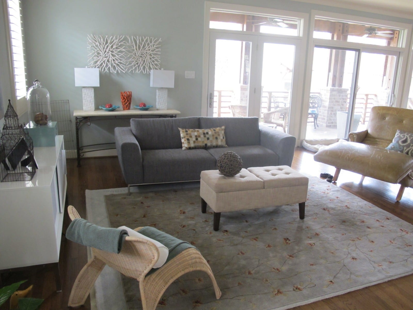 Additionally I recently found a rug I thought would work to spruce up the decor, but now that I look at it, it seems to make the room feel to “icy” and make more of the furniture/accents look as if they don’t really coordinate.