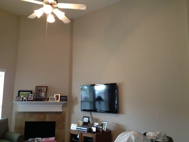 Our living room has high ceilings with lots of bare wall space to decorate but I’m struggling with how to do so. There’s also the issue of how to incorporate the flat screen television into the decor.