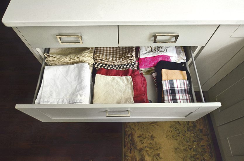 KM: No, I’m not that type. I can’t handle that kind of pressure. I think some people can do it, but I can’t. I even opted for frosted glass in the accent cabinets rather than clear glass, because I just didn’t even want to deal with it. I’m not at that level of organization! Just sitting and looking at an open counter is enough to drive me crazy.