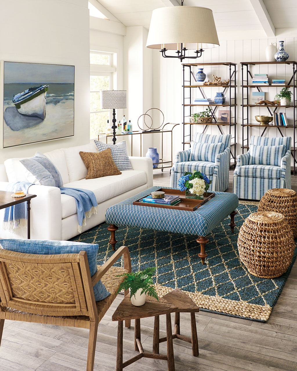We love the look of natural fiber rugs in almost any room — you’ll notice that in our catalog, we use natural fiber rugs in very formal living rooms as well as casual family spaces. As far as sisal vs. braided jute, jute will give you a bit more texture, and sisal is a little more polished. It just depends on what look you’re going for.