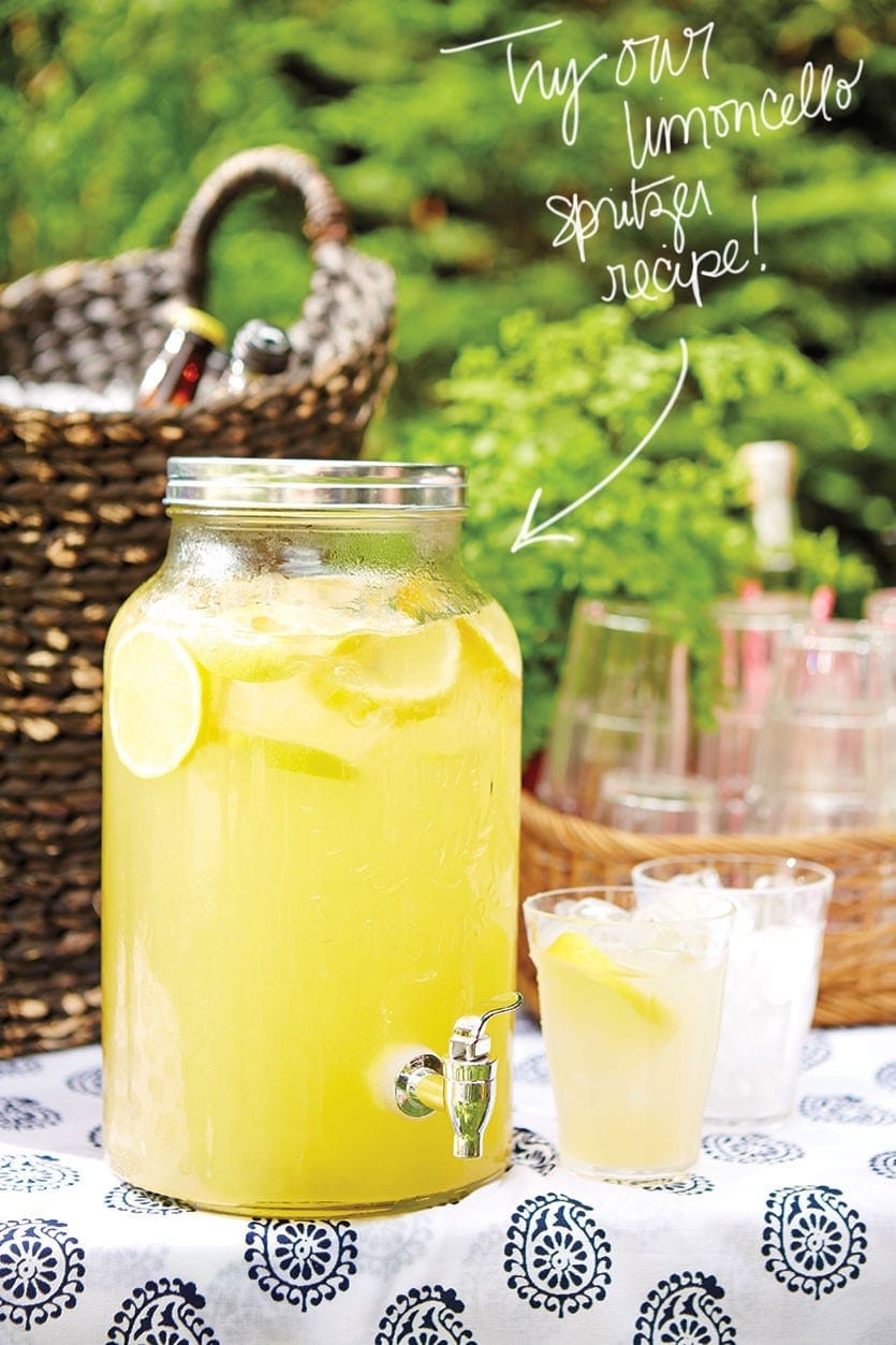 Our recipe for Limoncello Spritzers requires little more than dumping a few ingredients in a large beverage jar with some ice. Refreshing and virtually effortless!