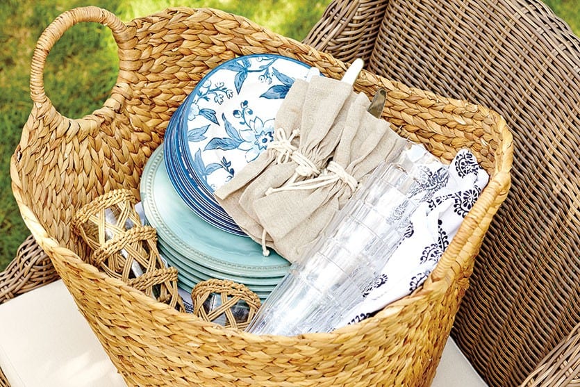 If you’re throwing an outdoor get-together, we guarantee someone will ask you for the following: sunscreen, bug spray, and a towel. Have everything on hand, ready to go, so you don’t have to tear yourself away from lively conversation to go track down the only clean towel in your house … or is that just us?