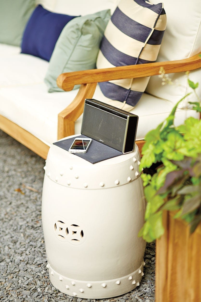 No need to spend time compiling your favorite songs from your music library into a playlist. Turn on your favorite Spotify or Apply Music playlist and they’ve done the work for you! And don’t forget to prop your speaker up on a garden stool or side table.