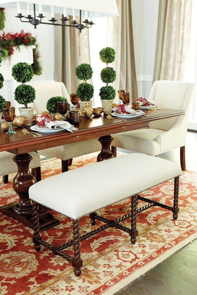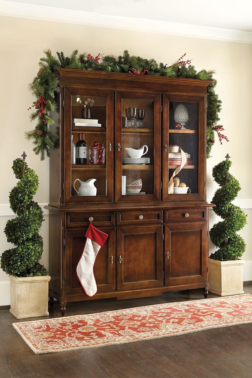 There’s nothing more beautiful than the elegant simplicity of greenery during the holidays. Potted evergreen, such as boxwood or ivy, are wonderfully versatile. Not only do they add seasonal cheer during the holidays, but they add a fresh look throughout winter. We left ours unadorned for Christmas, but feel free to embellish yours with your favorite ribbon or ornaments.