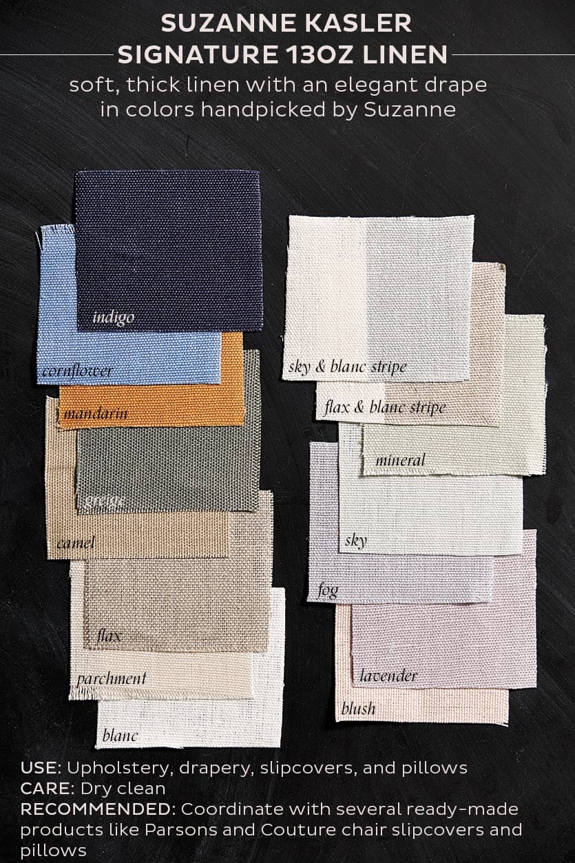 Suzanne Kasler’s linens are the perfect weight. They look lovely upholstered on a chair or headboard, but the linen has a fantastic drape for drapery too. Made from 100% linen and woven in colors hand-picked by Suzanne herself, you won’t regret bringing any of these fabrics into your home.