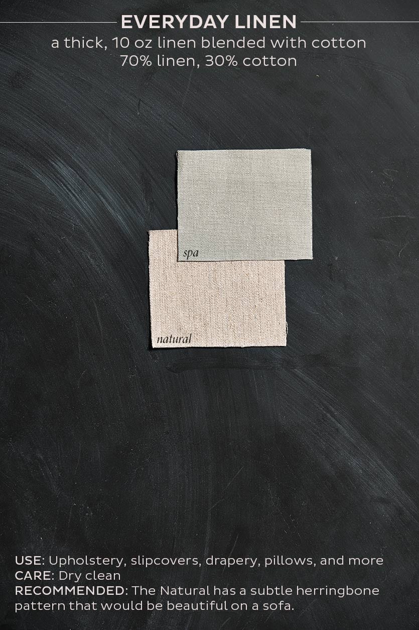 These 10 ounce linens are a thick blend of cotton and linen. They’re go-anywhere fabrics that will work well in just about any application, and we love the subtle herringbone pattern of the natural color!