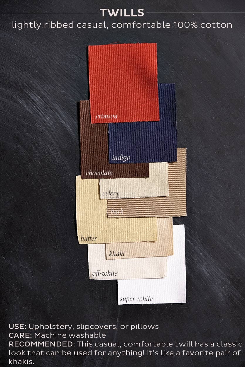 Our 100% cotton twills are a no-fail favorite. They’re easy to clean, soft to the touch, and give your furniture pieces a relaxed, casual style.