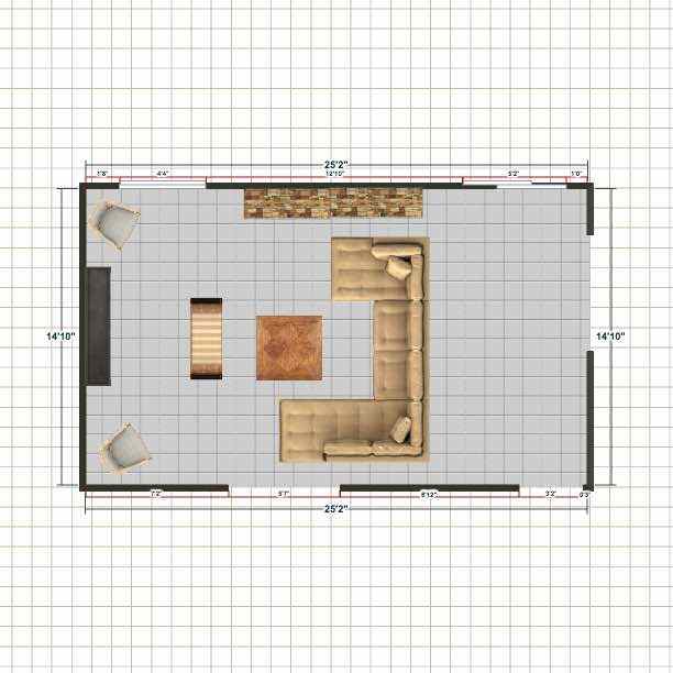 Thank you for the opportunity to create a beautiful and functional space for you. The design suggestions we stated below are based on the layout you planned for your family room which we think will work well!