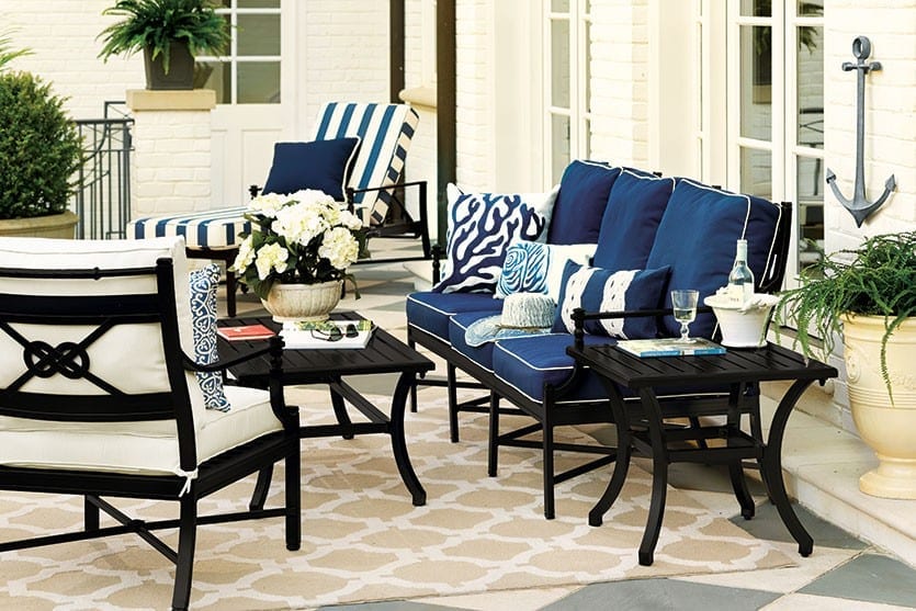 Our Newport Outdoor Furniture Collection features a chic knot motif on the back of its chairs, and whether you’re landlocked or seaside, will bring a classic, preppy feel to your outdoor space.