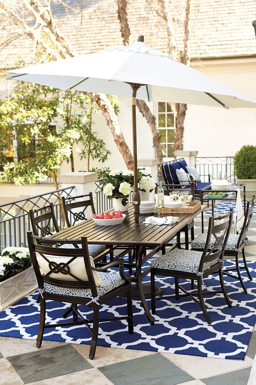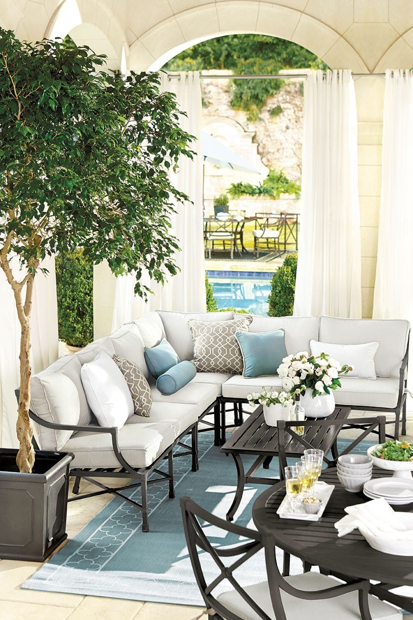 Now that our focus has shifted to the great outdoors, we’re constantly dreaming up ways to make our open-air living spaces as beautiful and comfortable as possible. And with today’s wide variety of weather-defying textiles, from curtains to cushions, stripes to polka dots, it’s now easier than ever.