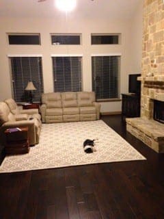 This looks like a very inviting and warm family space that you will be enjoying for years to come. We love our Moroccan Trellis rug in your room. Now let’s see what we can do to bring in some finishing touches.