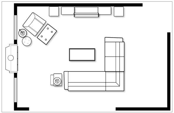 I have tried every arrangement possible on paper of the best way to arrange the family room. There are really only two walls, (walkway and kitchen uses other space) one of which houses the fireplace and two windows.