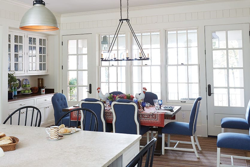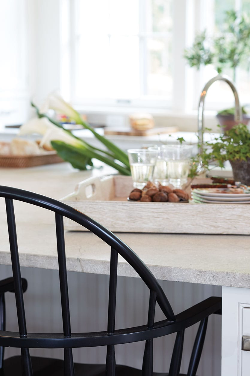 BW: It’s the perfect way we live today — a real family kitchen. It’s a wonderful workspace with tons of storage, and it has these beautiful views overlooking the countryside, so you don’t feel that you’re suffering because you’re in the kitchen. And you have the dining table at the other end of the kitchen rather than a separate formal dining room. Between Ballard Designs’ Windsor Stools around the great island and the dining table, there’s plenty of places for people to hang out and keep the cook company.