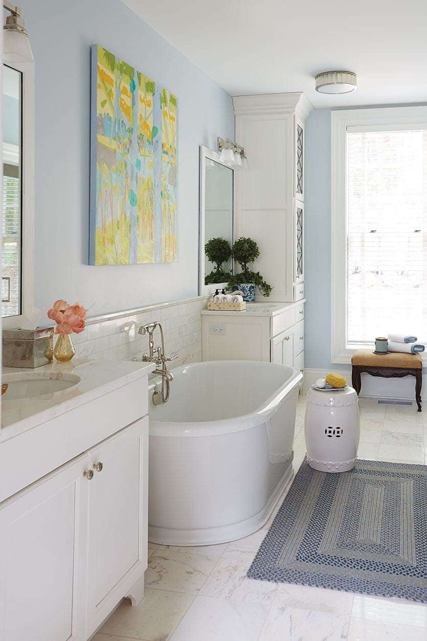 BW: It’s in the details. For the entrance hall, I used an antique Persian carpet that has a red clay background, because Virginia is covered in red clay. You put your spade in the soil and it is red. Growing up here, there was always a red rug in the hall, so if you tracked the red clay in, it doesn’t show. Of course, you’ve got the other items to make a welcoming entrance — a mirror over the table, so you can check your hair and makeup and a bench to drop your things.