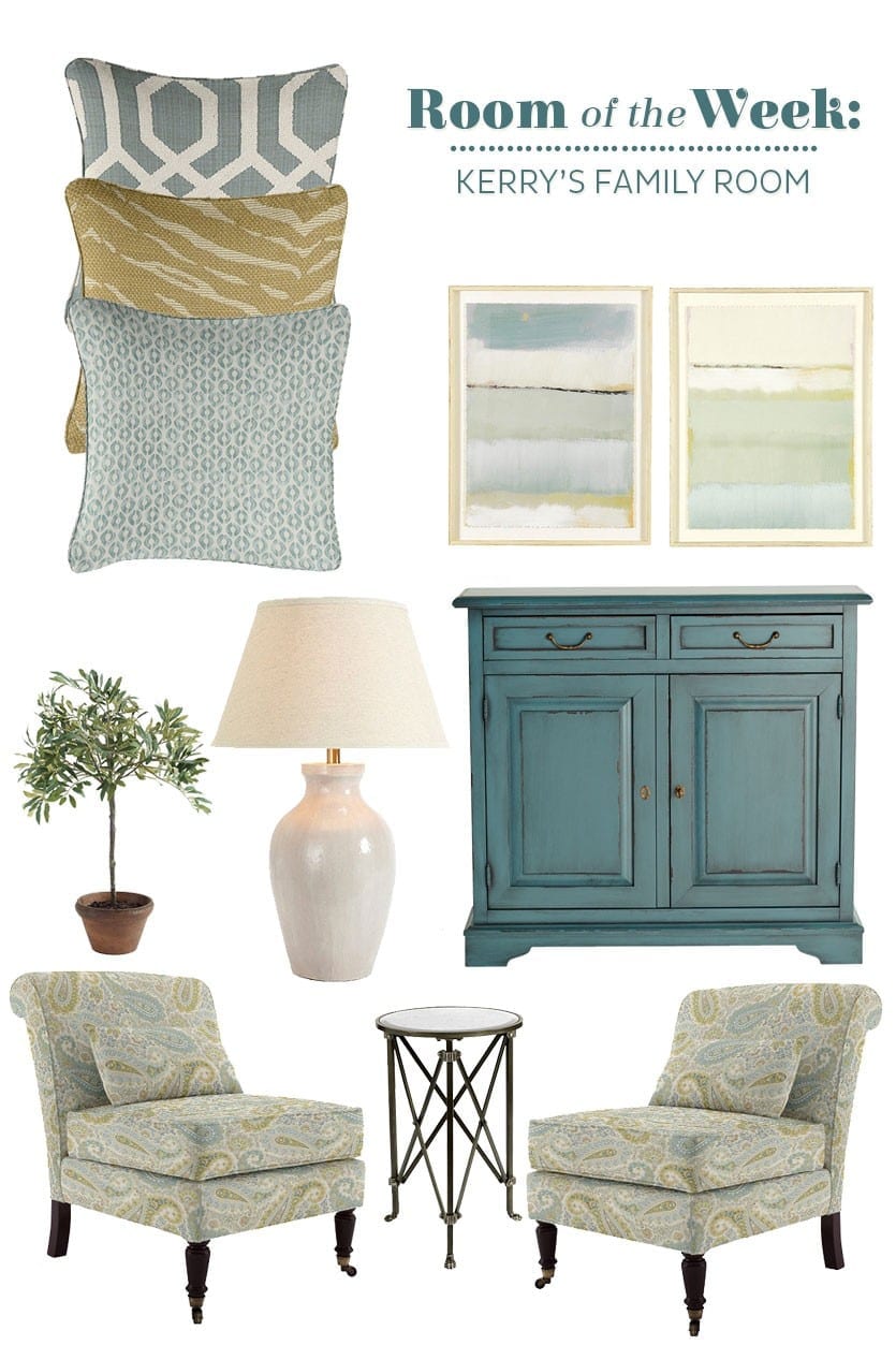 I’d like to tie together our family room. We have all of our big furniture pieces, but how do I bring it all together? What kind of wall art, chairs, and end table, would complement my space?
