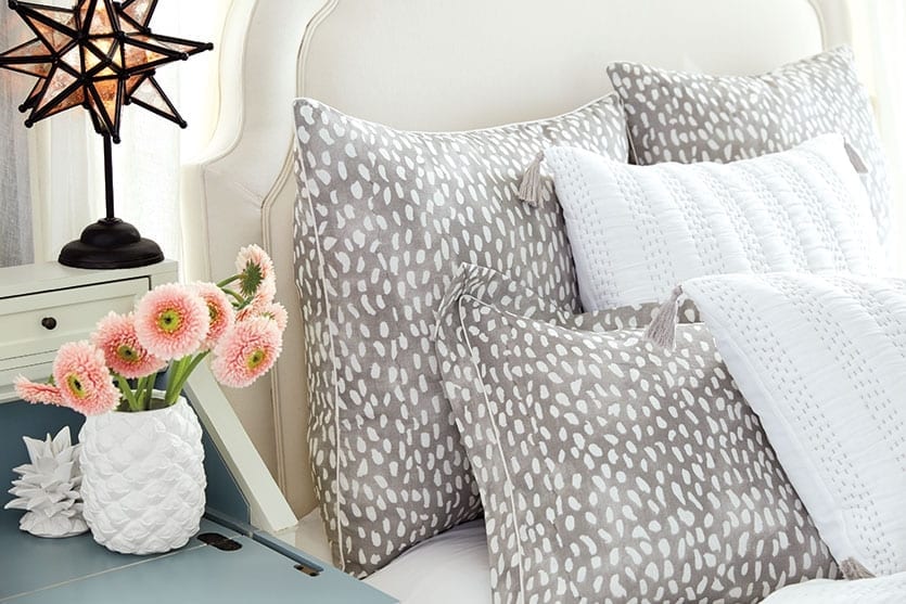 We believe there is a little bohemian in all of us. We are all drawn to tassels and fringe. This bedding has this beautiful pickstitch and a kantha throw kind of feel with these little tassels on the corner. It’s so cute. It also comes in gray, so it can go super neutral, so the only special detail is the stitching.