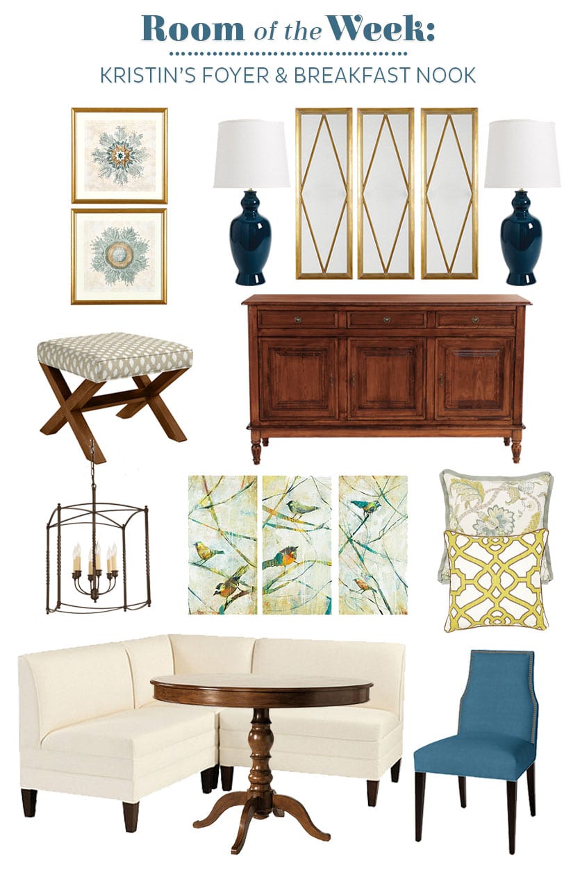 In the kitchen, I’d love a fabric banquet with a new table and chairs. I’m not good at picking out home decor, so I need finishing touches and rugs too!
