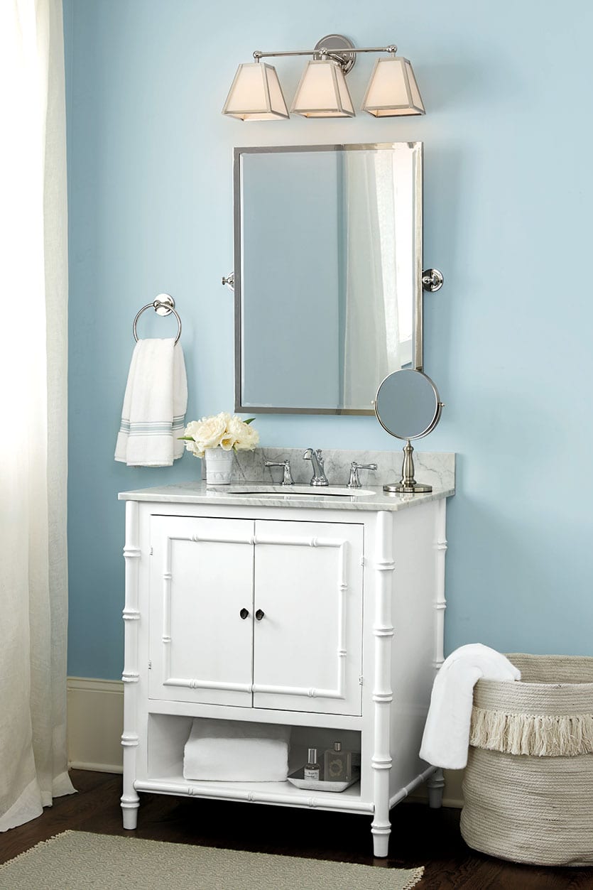 When I was renovating, I was looking for a bath vanity, and they’re incredibly expensive and often ugly. It’s hard to find tasteful, affordable vanities, and I think we have to pay attention to every room, even the bathroom. Ballard is beginning to move more into the bath, and we’re creating some very stylish options for vanities and hardware. That’s why I love this one. The details are lovely. It’s made in Italy and has a Carrera marble top. We have another vanity coming out in the summer, and, of course, we have the Casa Florentina Casoria Vanity, which is available in 15 finishes.