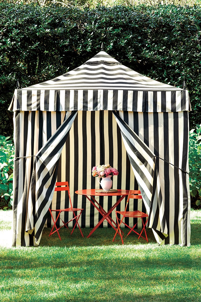 KM: Everyone in this building loves their home and love figuring out fun, new ways of entertaining people. So when we were brainstorming a backyard party, we talked about the things we dream of having. I guess you could say we developed this cabana for us! It comes in two sizes — there’s a smaller towel valet for poolside and a larger one for setting up a bar or buffet. You could also have an intimate dinner for six inside or put a deep seat in there to escape from the sun when you’re lounging in your backyard. It’s incredibly versatile.