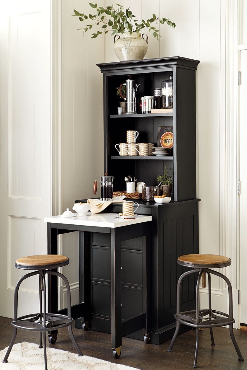 We all could use more storage in our homes, but custom carpentry isn’t always in the budget. Our Caleb Coffee Bar is so versatile — use it for brewing your favorite beans or as a baking center or even just for extra kitchen storage where you need it. This versatile piece has an extra workspace on wheels so it can be tucked away when not in use and deep drawers for storing appliances, grinders, or extra coffee beans.