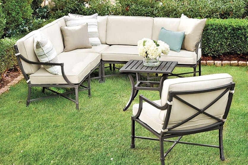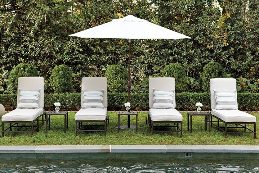 SK: I love to build upon a neutral foundation, just as I do in any room, so I always include neutral cushions with my seating collections. Then, you can add any accent color you want with pillows and change the look from season to season. This year I chose a subtle stripe in spa and taupe, but you could really add any color you want. The great thing about these collections is that they’re all interchangeable with Ballard cushions, so if you wanted to go bold with your cushions, you could. It completely changes your whole look, so it’s an easy way to update.