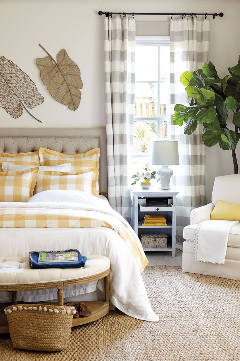 Sometimes simplicity is the way to go, which is why we chose our Gwyneth Buffalo Check Bedding in a happy yellow hue. We mixed it with luxuriously soft white linen duvet and shams.