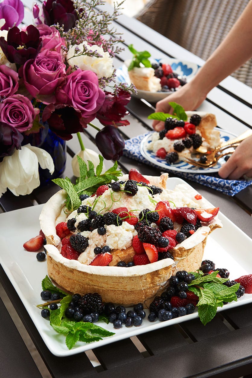 This simple torte is meant to feel rustic — in other words, it will fall apart and crumble as you serve it. But that’s part of the fun in our minds! It’s a casual dessert that’s light, packed with flavor, and the perfect ending for dinner out on your patio.