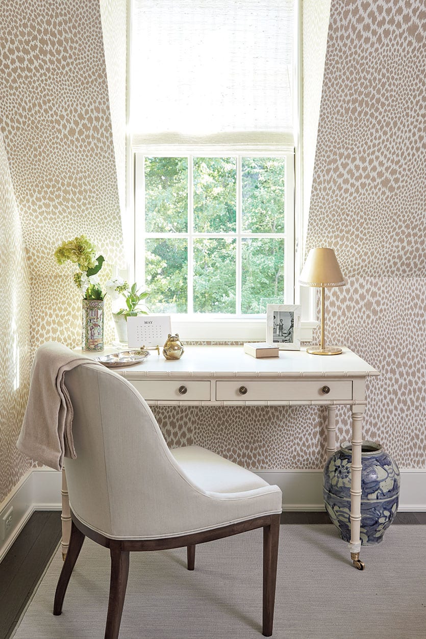 AB: Living comfortably and entertaining are what I wanted to express. Also, I think layering and attention to detail is very southern, such as the trimwork, the tiny pinstripe wallpaper. The details are important!