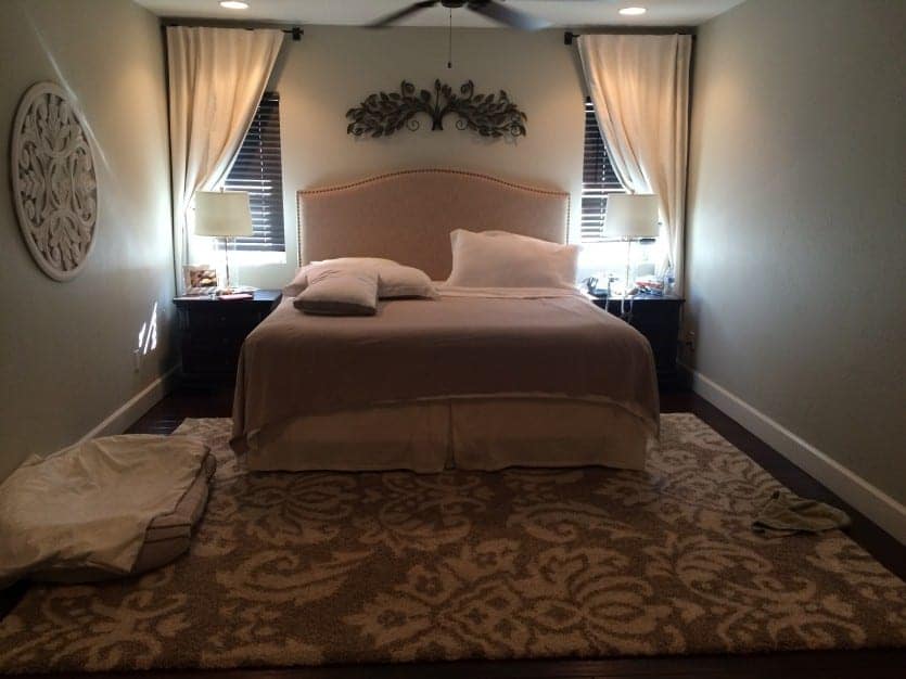 I replaced this headboard with another one, a tufted cream headboard, thinking it would help me, but I’m still at a loss.