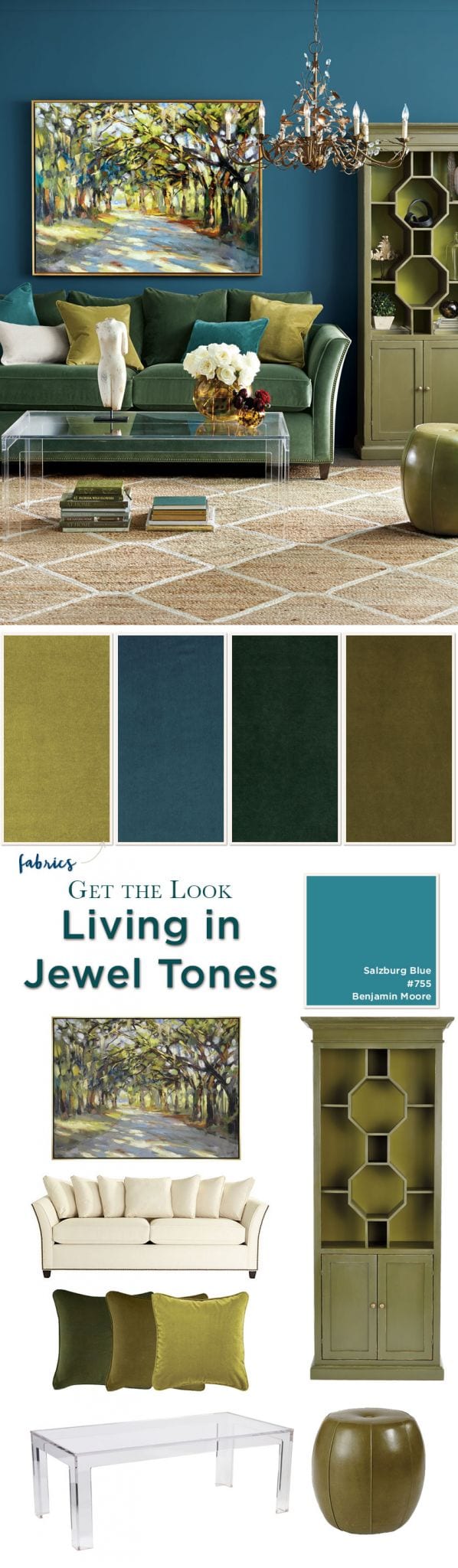 Every season, we love exploring new color palettes, and for Fall 2016, we were inspired by jewel tones. There’s something about them that just feels so cozy, welcoming, and luxe. And who doesn’t look forward to a little luxury once the colder months come around? Candlelit dinners, fireside chats, cashmere sweaters, and leather boots? Consider us in! And for an evening like that, we think you need to spend it in a room like the jewel toned living room in our Fall 2016 catalog. Get the look below: