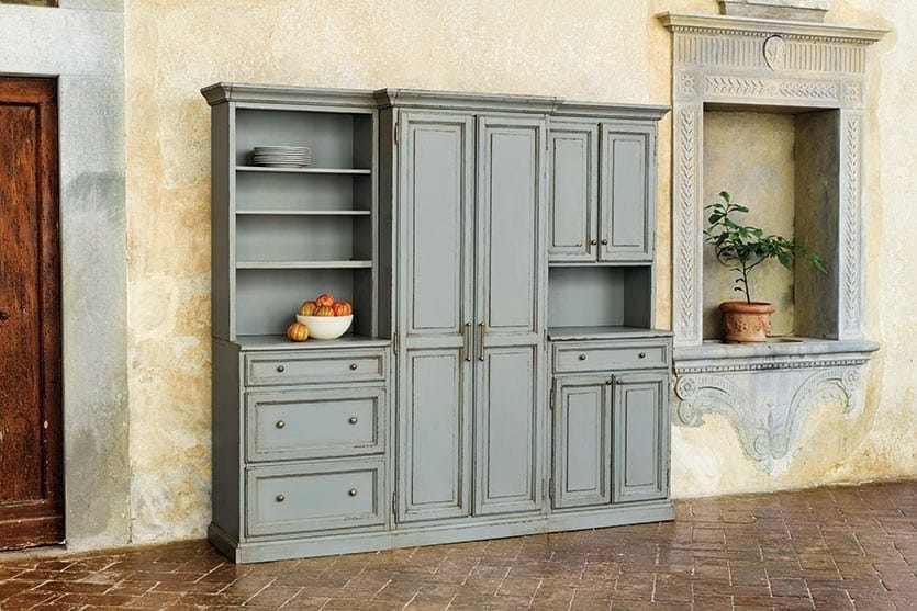 We wanted our Matera Collection to look like heirloom pieces, but we designed them to be totally modular to fit a variety of storage needs (and room layouts). Four different server configurations and the pantry work in any combination and are fully outfitted to organize everything from barware to blenders. Bottle racks hold your favorite vintages with stem racks below. And we added a mirrored interior to keep the look light and airy. A white porcelain ledge is perfect for prep work.