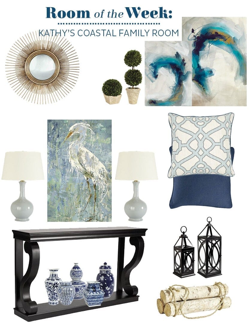 I’m trying to keep my family room feeling comfortable and coastal. I want to walk in, sink into the sofa, and relax, but I don’t know what to add to complete the room!