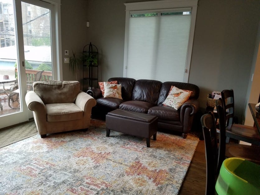 I have a media console I like, but I’m not sure how to accessorize it. We also need toy storage solutions, which you can see in my photo! We have an outdated overstuffed chair, a coffee table and end table that could stand to be replaced.