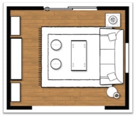 We love your TV Stand and your beautiful rug. They are great starting point pieces to convert your “plain and boring TV wall” into an awesome one.