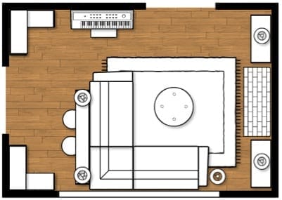 Thank you for referring your design dilemma to our design team. You have a beautiful open space room, and we have some great ideas on how to add more seating and place new furniture in your living room.