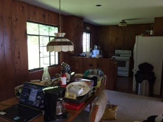 We purchased a 1950 knotty pine cabin on a lake. I would like to keep the original character of the house but update from a cabin to a cottage. It came with some nice antique pieces that I would like to incorporate. Due to the musty smell we had the crawl space lined, pulled out the carpeting and had hardwood laid (which helped tremendously.)