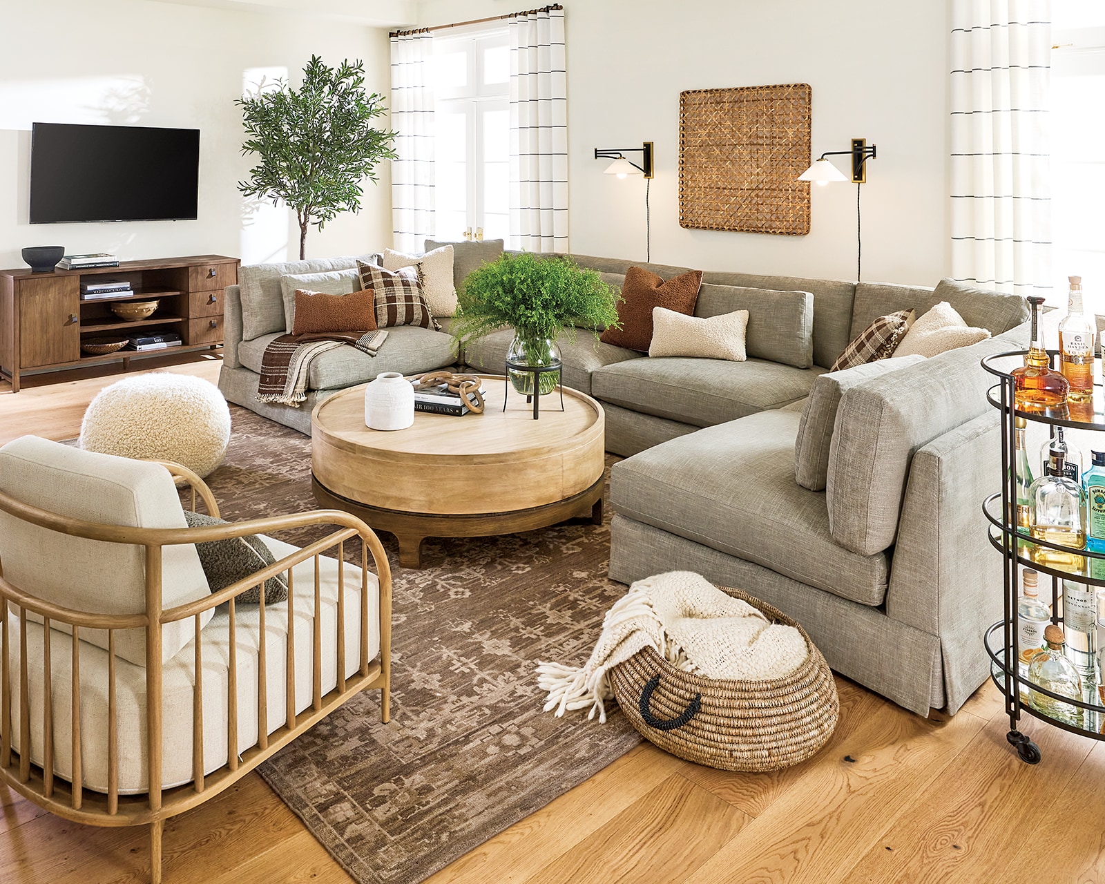 This is a great point, and something we will add to our list of future blog post ideas: we wanted to focus this particular post on the variety of arrangement options for a living room’s primary anchor furniture (sofas, accent chairs, end tables, etc.). However, since TV’s and entertainment centers are a vital part of most living room designs, we will also cover how that could function in the layout of a space as well.
