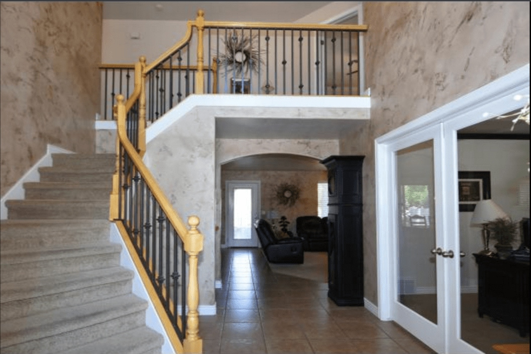 2. My house has an entry way that’s kind of tuscan texture stuccoed. The same texture goes into the living room (I’ve attached some pictures from before we moved in for your reference). I don’t hate it, but I definitely don’t love it. I guess it’s just not my style. My style is more modern, fresh and clean with pops of bright color and I’m struggling to make it fit my style. I looked in to getting it skim coated but it’s time consuming and crazy expensive. Do you think it would look good with a lighter paint color? Should I just splurge and get it done? Can I decorate around it to nudge it toward my style?