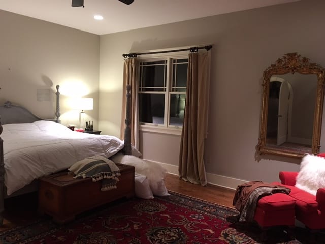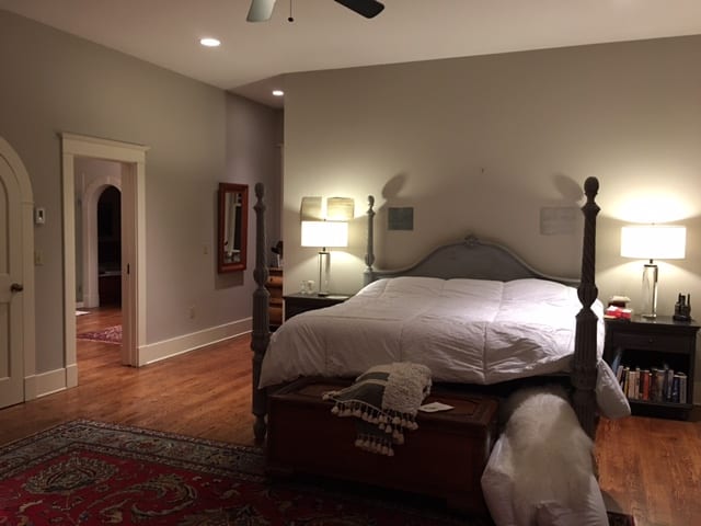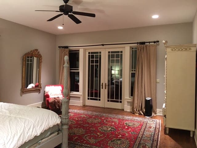 I have a large bedroom that’s about 20 x15 feet with a side wall with two large windows and a back wall with french doors. The room opens up to a large bathroom with double sinks, a separate toilet area with pocket doors, and a separate door with a large tub and oval window.